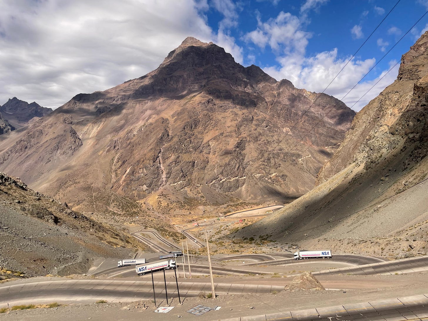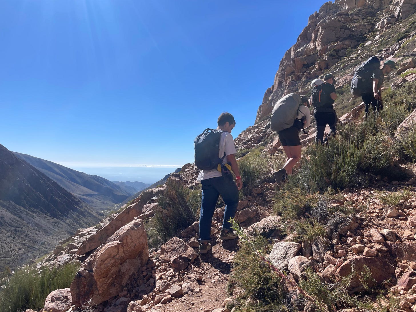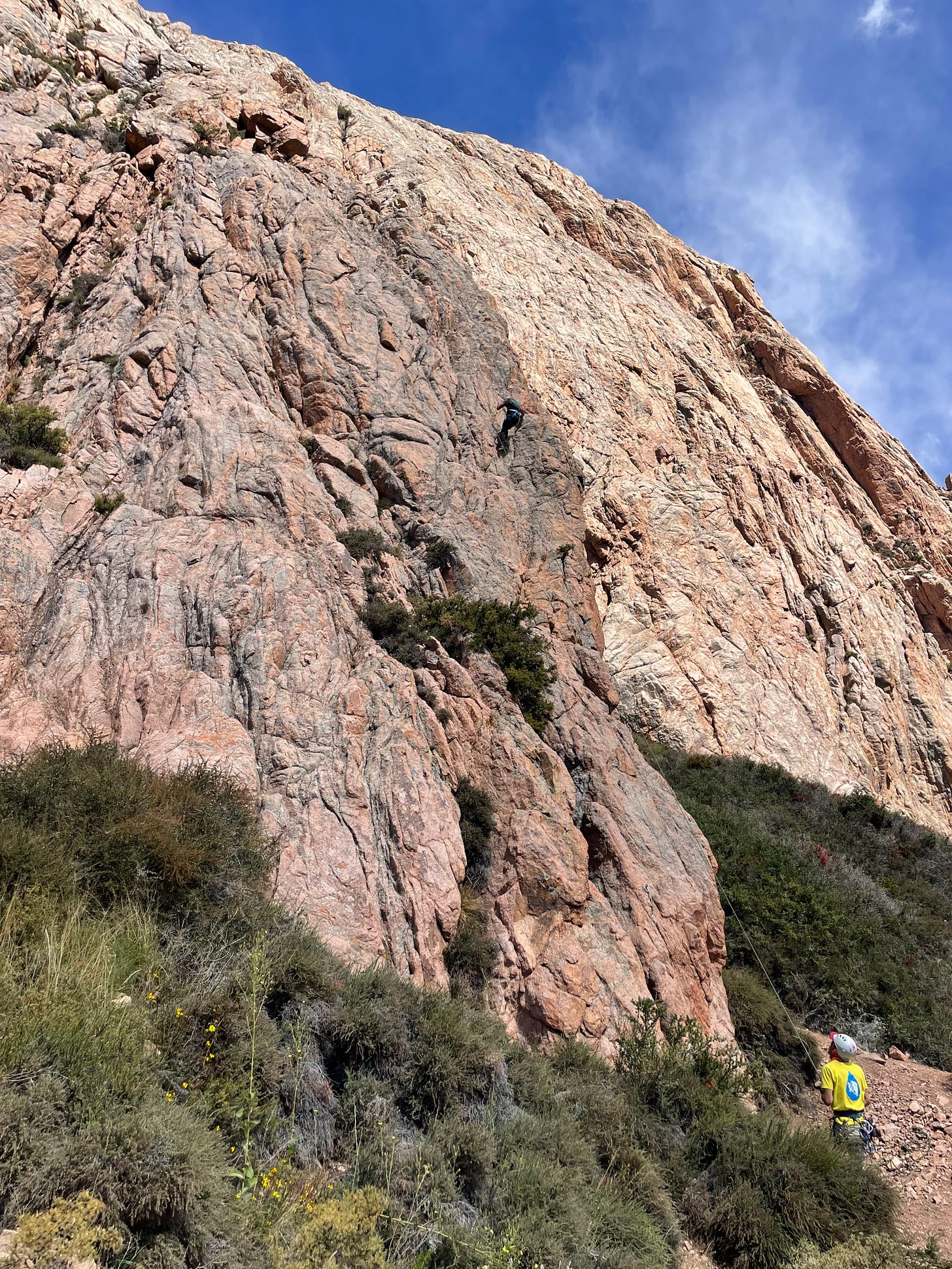 On Thursday, I went rock climbing with a group from the hostel, including Iasmin and Pedro (Brazil), Iván (Uruguay), Theo (France), Nico (Argentina), and our two Argentine guides, Mathias and Vicente. We all piled into a jeep-sized truck at 7am and drove about two and a half hours towards the Andes. As we drove into the mountains, we passed some semi-wild horses, and some dogs happily chased our car for a while. We made it to a steep trail that we hiked up to arrive at the base of the rock wall. It was one of the most beautiful settings I’ve ever rock climbed in — probably tied with San Vito Lo Capo in Sicily, where I climbed last summer.
